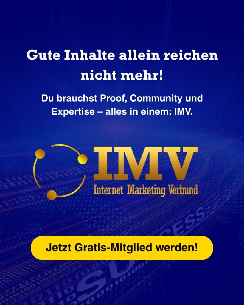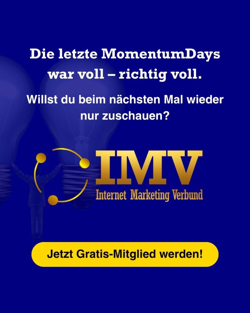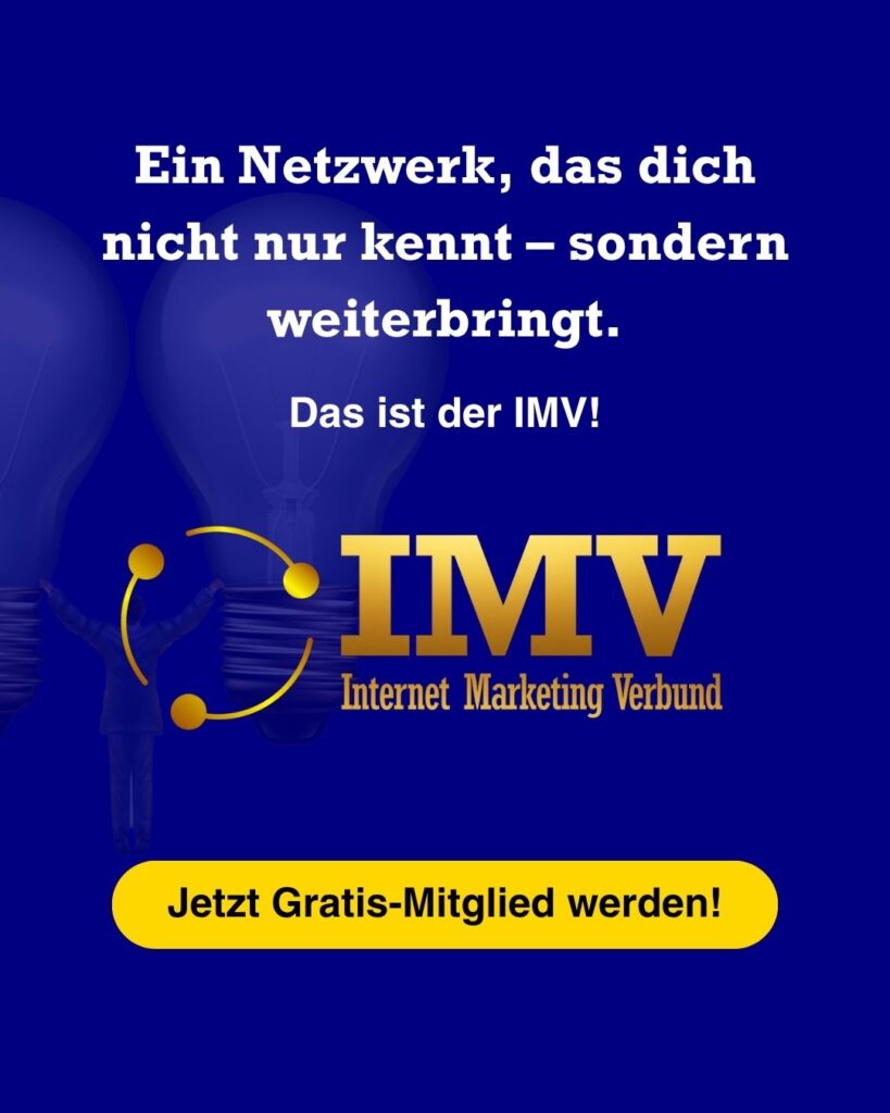 Ein Netzwerk, das dich weiterbringtDer IMV ist nicht nur sichtbar – er ist wirksam. Austausch, Support und Sichtbarkeit inklusive.→ Netzwerk