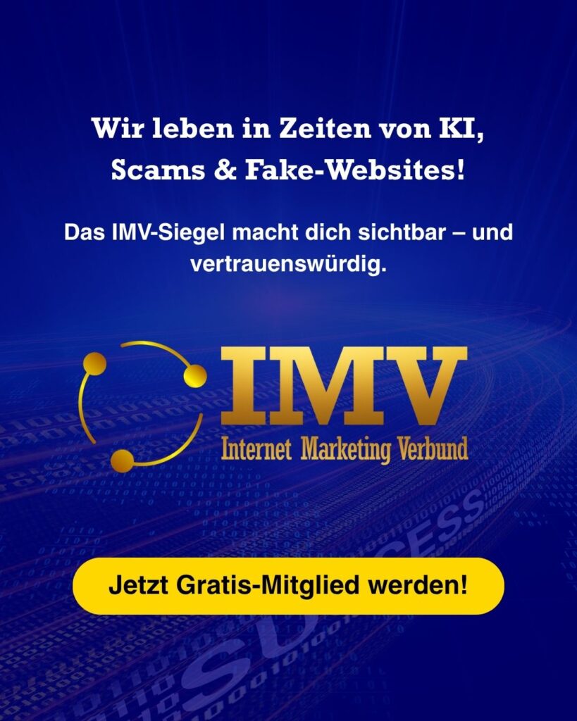 Sichtbarkeit trotz KI & ScamIn einer Welt voller Fake-Websites und KI-generiertem Content sticht echte Seriosität heraus. Das IMV-Siegel ist dein