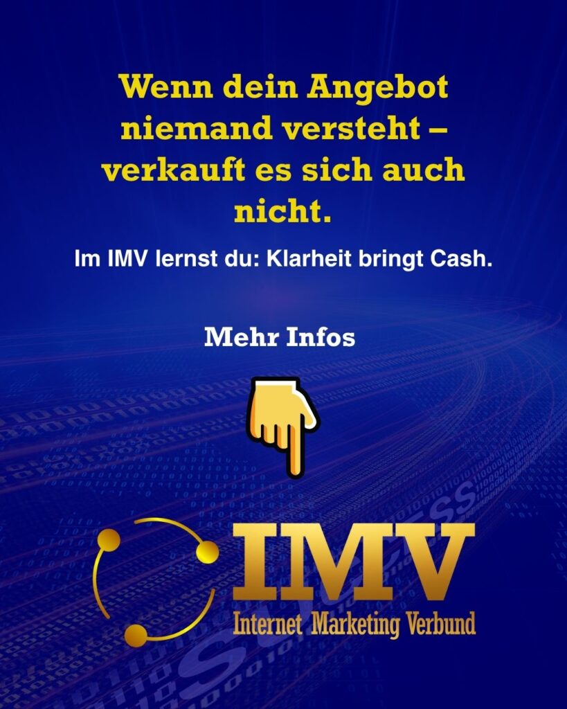Wenn dein Angebot niemand versteht – verkauft es sich auch nicht. Im IMV lernst du: Klarheit bringt Cash.
