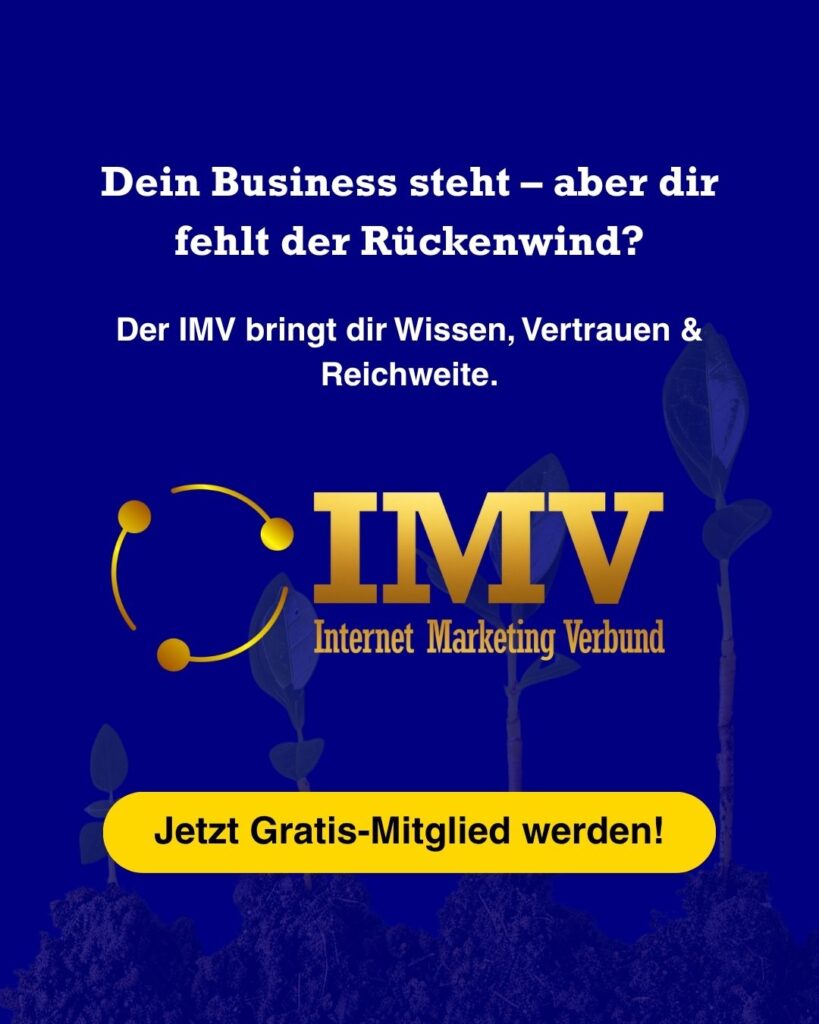 Dein Business braucht RückenwindDein Angebot steht. Deine Website läuft. Aber dir fehlt der nächste Schub? Der IMV bringt dir genau
