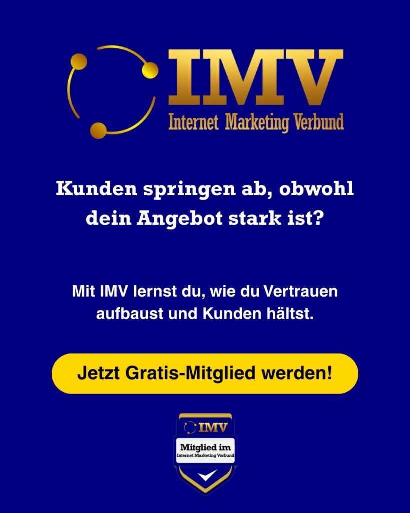 Kunden springen ab, obwohl dein Angebot stark ist? Mit IMV lernst du, wie du Vertrauen aufbaust und Kunden hältst.